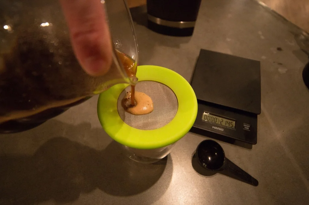 What measurements should I use? We recommend two standard coffee scoops for about 1 cup of water. If you want to be precise, we use a brew ratio of 15:1, and measure grounds and water using a scale. Our go-to measurements are: 14 g of grounds to 210 g of water.